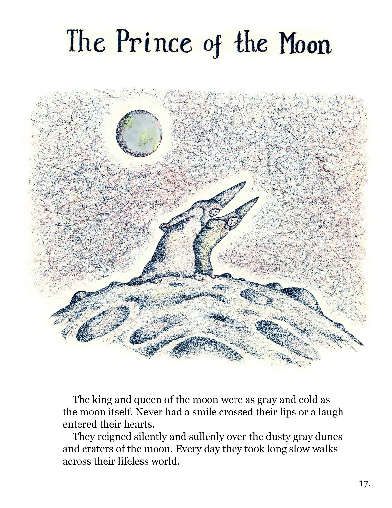 This is a collection of seven fully-illustrated short stories for children: The Gardenchildren, The Quiet Boy and the Monster of the Jungle, The Prince of the Moon, Out on Loan, The Marble Walkingstick, The Skychild, and Beyond the City Walls.